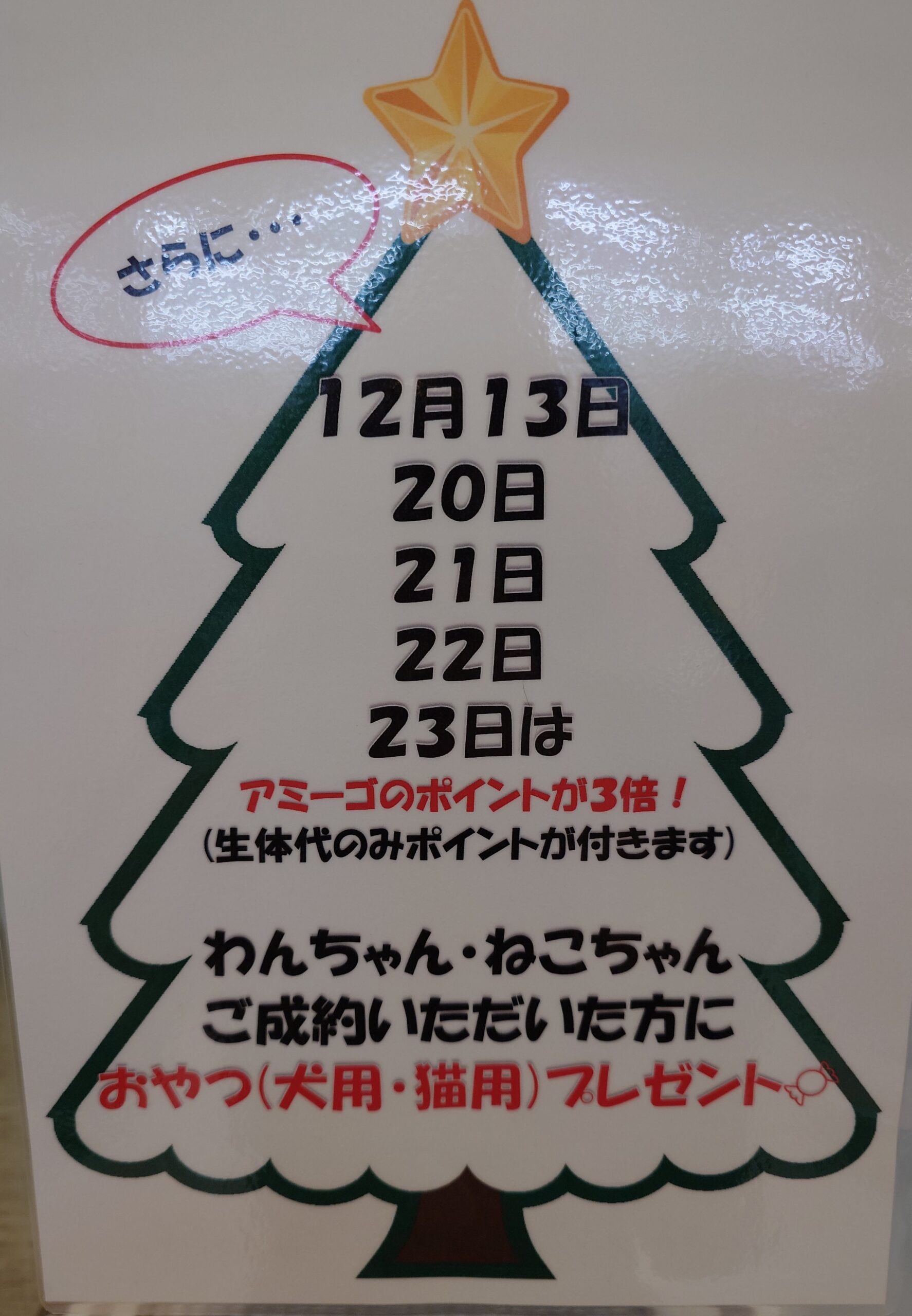また、12/21・12/22・12/23に わんちゃん・ねこちゃんをご成約の方には