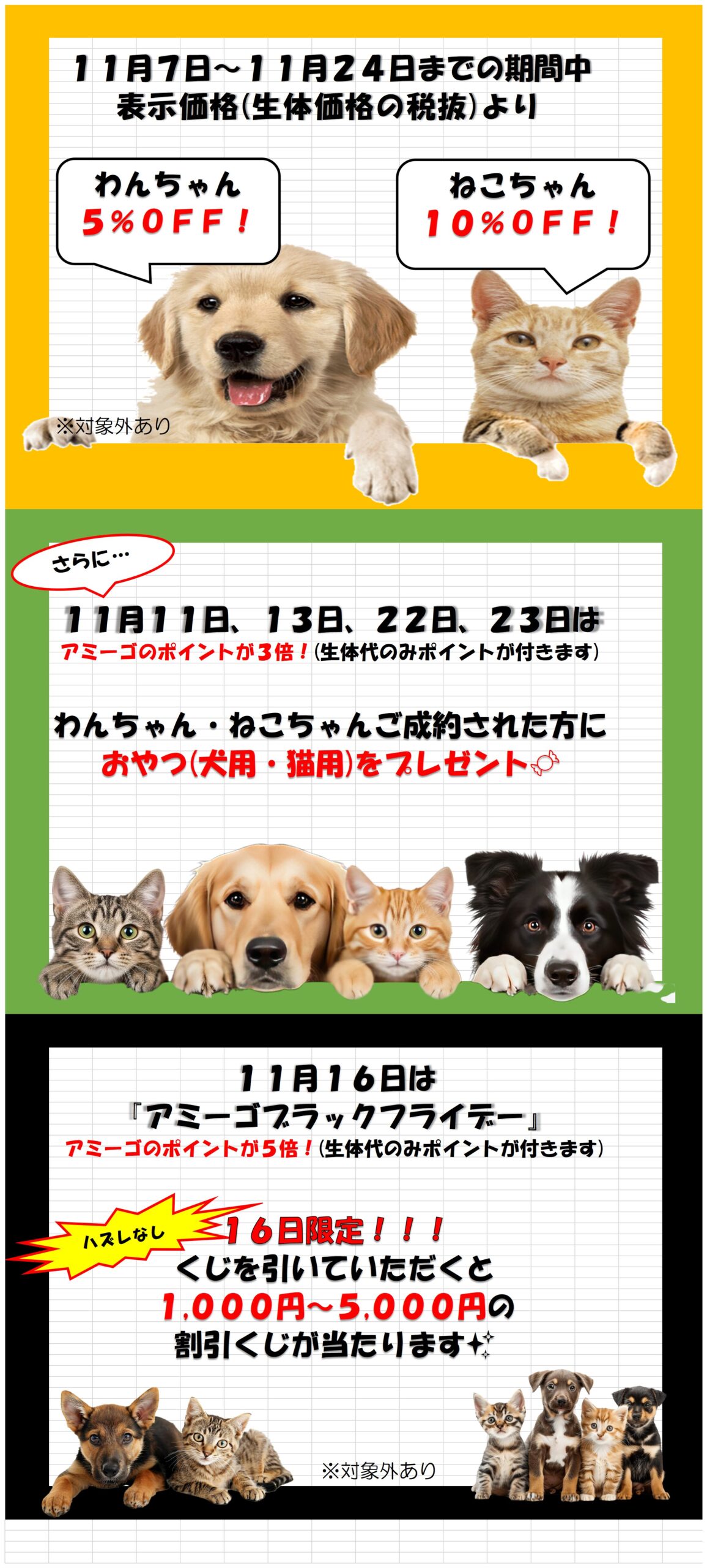 🐶11月のお迎えキャンペーン開催のお知らせ🐱